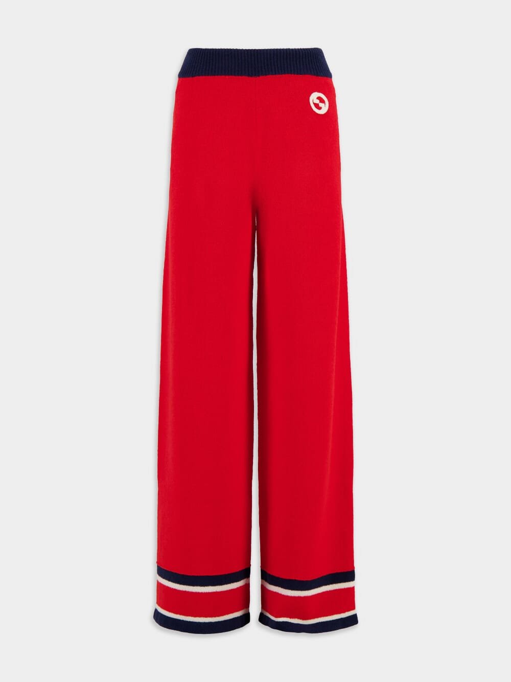 Cotton Trouser With Stripes, crafted with a knitted construction, these trousers offer a soft and cozy feel against the skin. The embroidered logo adds a touch of sophistication and brand recognition. The ribbed trim adds texture and enhances the overall aesthetic. With an elasticated waistband, these trousers provide a comfortable and adjustable fit. The slip-on style allows for easy and effortless wear. The wide leg cut adds a trendy and modern touch to the design.