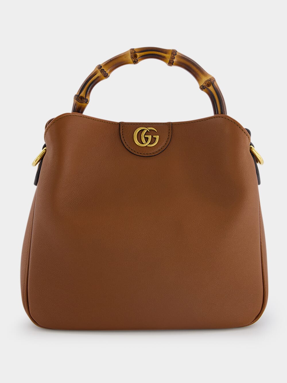 Gucci Diana small shoulder bag, a blend of elegance and sophistication. The microfibre suede-effect lining offers a luxurious feel, while the iconic Double G logo adds a touch of glamour. This bag comes with an additional leather shoulder strap, providing versatility in styling. Inside, you'll find a zip pocket for convenient organization. The bamboo handle with an 11cm drop and the removable, adjustable shoulder strap with a 52cm drop offer various carrying options. The magnetic closure ensures easy access to your essentials.