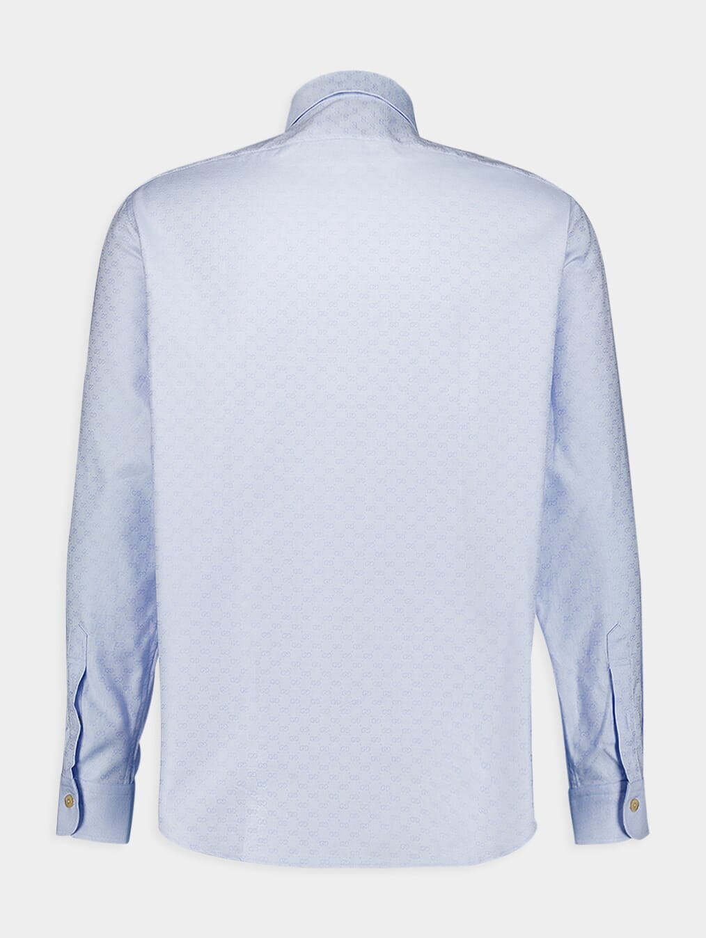 Double G Cotton Shirt, adorned with the signature Double G logo and a timeless monogram print. This shirt boasts a classic straight-point collar and a convenient front button fastening. Complete with a chest patch pocket and long sleeves featuring buttoned cuffs, it exudes both style and functionality. The curved hem adds a touch of sophistication to this essential piece.