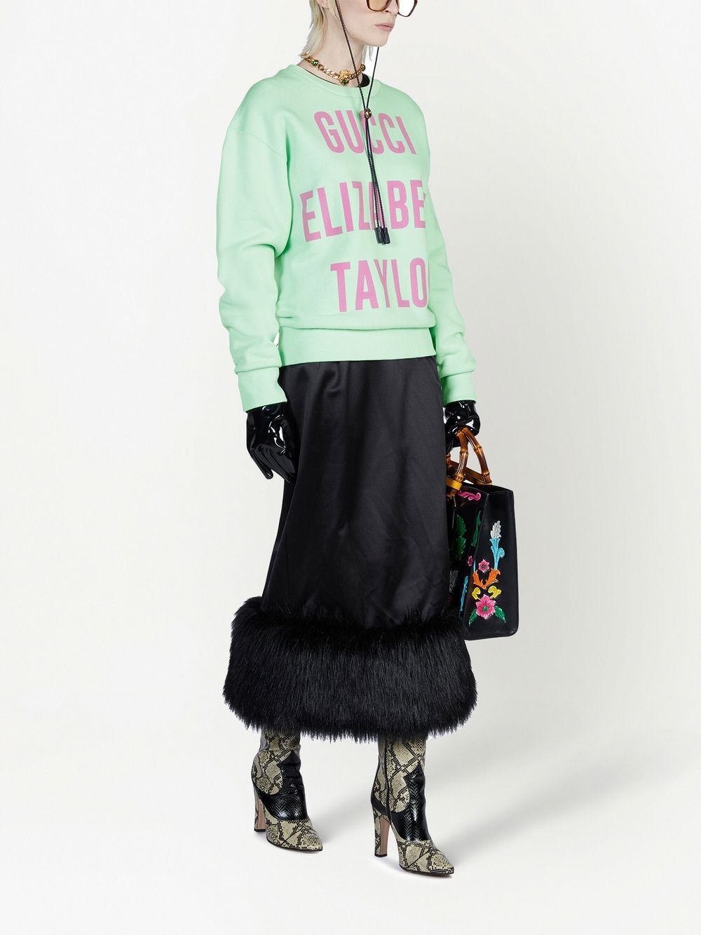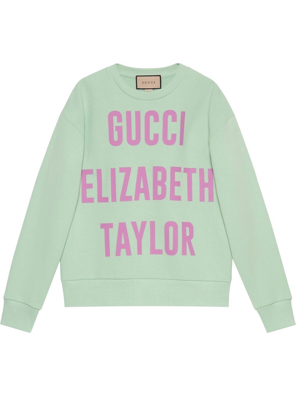 Gucci light green felted cotton sweatshirt with 'Elizabeth Taylor' print on front and back.