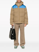 GG Cotton Canvas Padded Down Jacket, meticulously crafted from a premium cotton blend and filled with cozy goose down. The padded design ensures warmth and comfort on chilly days, while the classic GG canvas adds a touch of luxury. Featuring contrasting panel detail, a practical funnel neck, and a concealed front zip fastening, this jacket combines style with functionality seamlessly. The long sleeves with touch-strap cuffs, detachable hood, and two side zip-fastening pockets offer versatility for changing weather conditions. Complete with an elasticated hem for a tailored fit, this jacket is a must-have addition to your cold-weather attire.