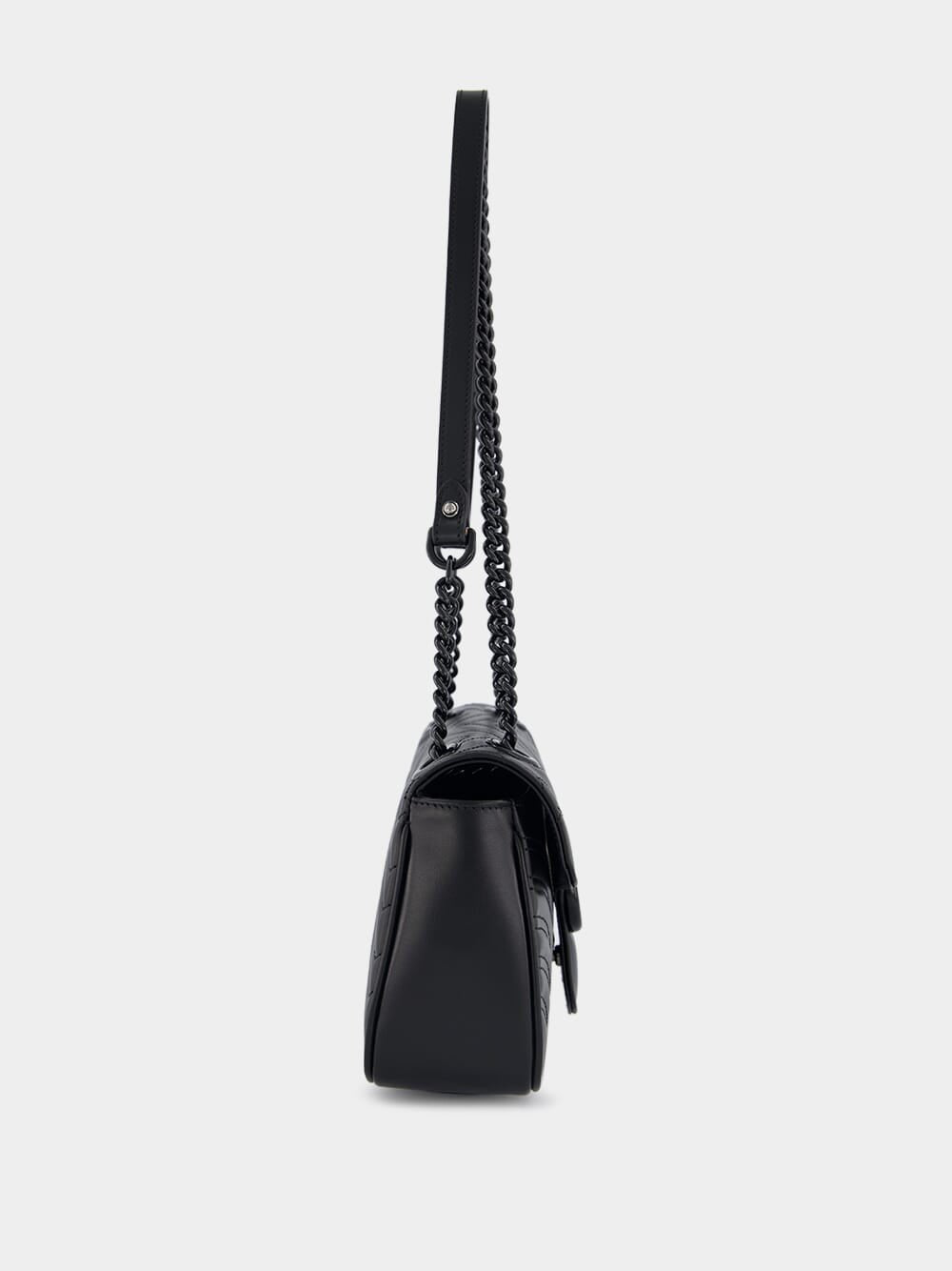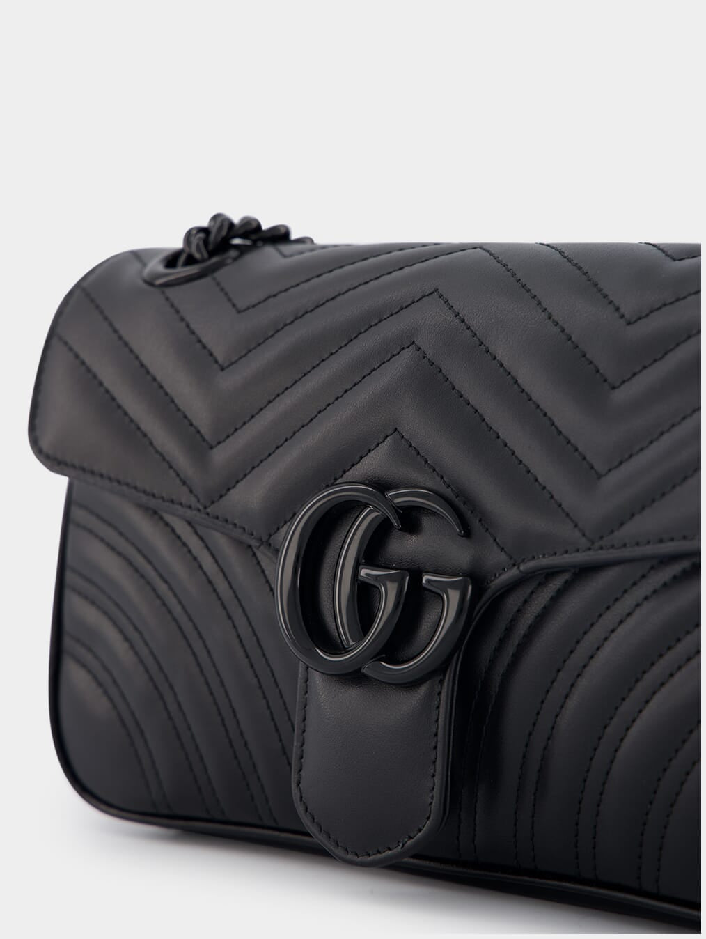 GG-Marmont Shoulder Bag, a stunning embodiment of luxury and fashion-forward design. Experience practicality with an interior zipper pocket, perfect for keeping your essentials organized. Embrace versatility with a sliding chain strap that can be worn as a chic shoulder strap, allowing you to effortlessly switch up your look. The bag's elegant flap with a spring closure adds a touch of sophistication to your ensemble.