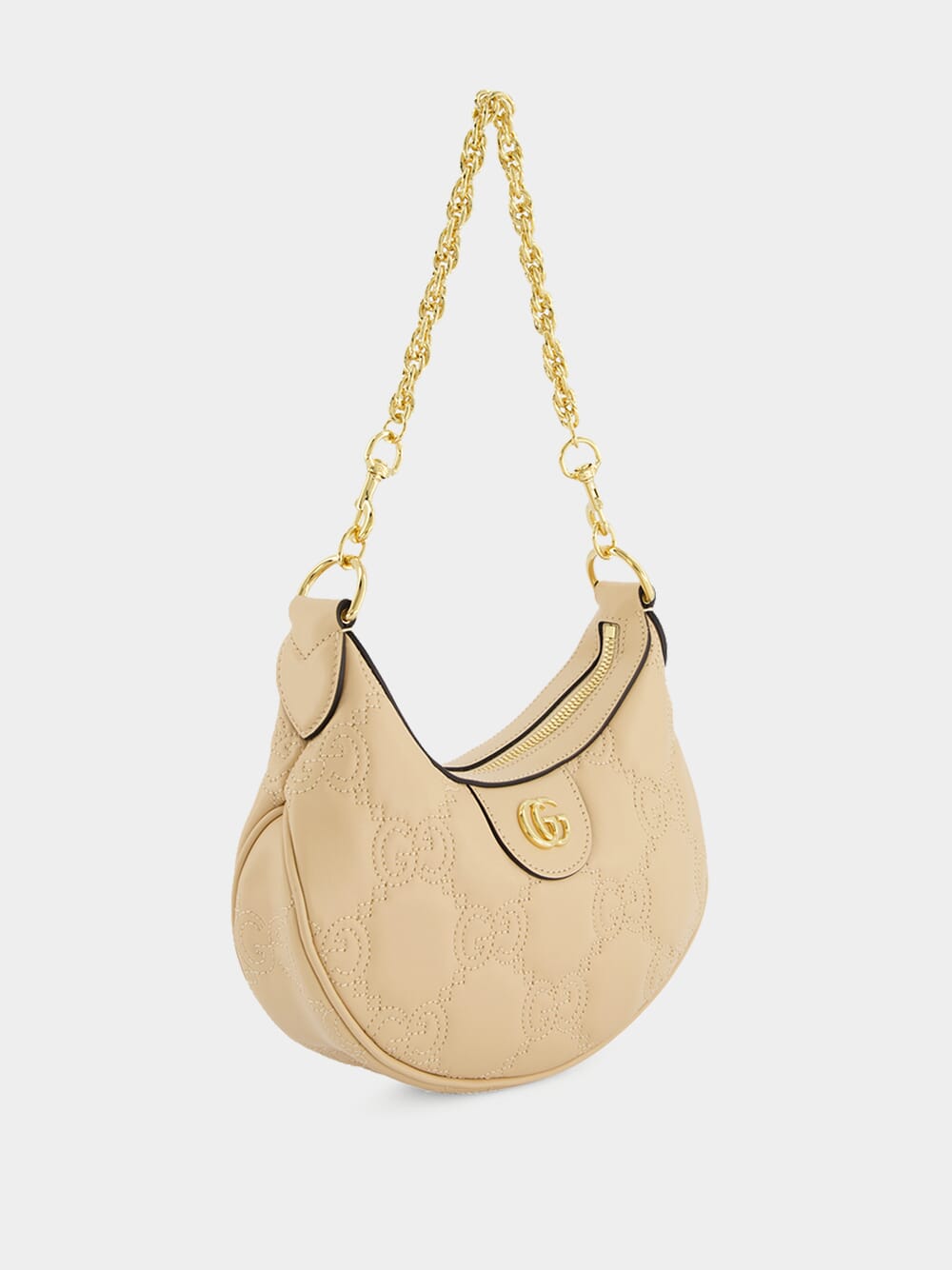 GG Matelassé Mini Bag, adorned with gold-toned hardware, this bag exudes a sense of luxury and sophistication. The canvas lining offers durability and a touch of refinement. The iconic Double G logo adds a timeless elegance, showcasing the brand's renowned craftsmanship. Inside, you'll find a convenient open pocket, perfect for organizing your essentials. The bag comes with a detachable chain top handle, allowing for various carrying options. The adjustable leather strap provides customization, ensuring a comfortable fit. Securing your belongings is made easy with the zip closure, providing both style and functionality.