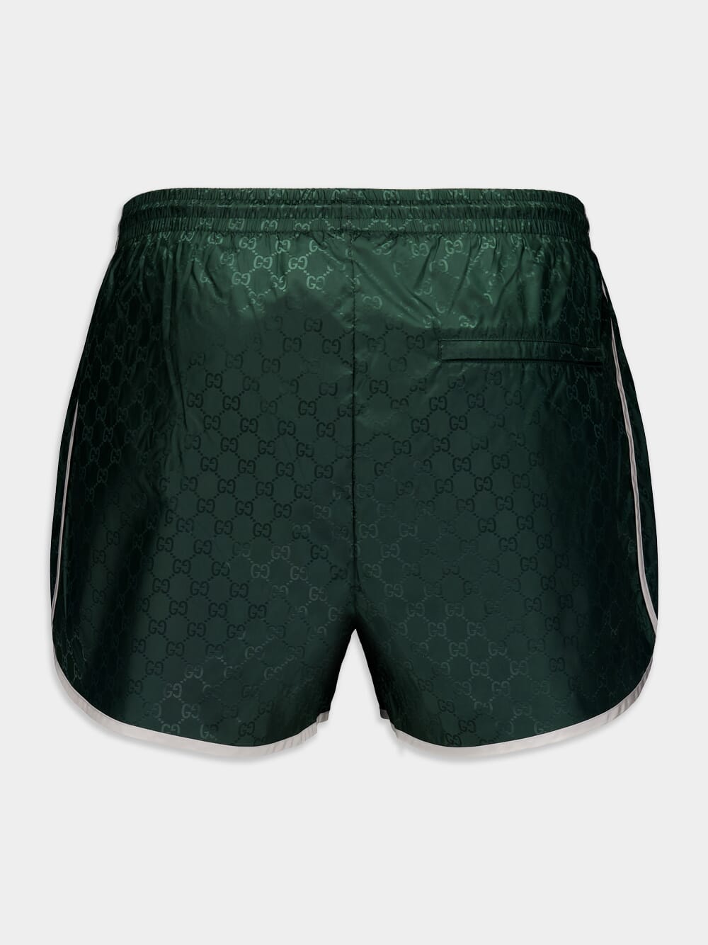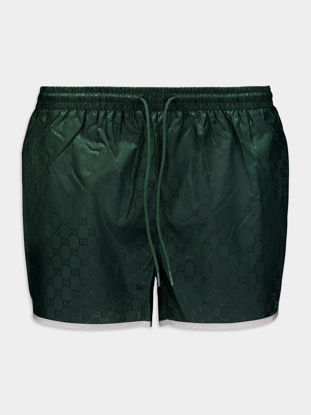 GG Nylon Jacquard Swim Shorts crafted with high-quality materials, these swim shorts offer durability and ease of movement, making them ideal for any water adventure. Featuring an elastic waistband with a drawstring, these swim shorts ensure a secure and adjustable fit, providing maximum comfort. The practical design includes a back patch pocket, allowing you to carry your essentials while on the go.