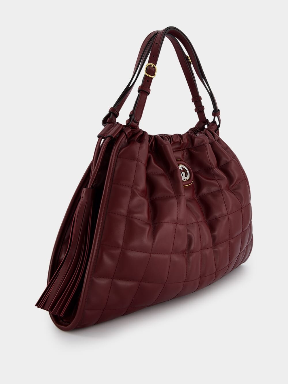 Gucci Deco Medium Tote Bag, adorned with two-toned vintage Interlocking G hardware, this bag exudes a sense of timeless elegance and luxury. The microfibre suede-effect lining adds a touch of refinement to its design, offering a plush and indulgent feel. The Interlocking G logo showcases the brand's iconic emblem, representing sophistication and craftsmanship. The two side tassels add a playful and trendy element to the bag. Inside, you'll find a convenient zip pocket, perfect for organizing your essentials. The bag comes with double handles, providing a comfortable grip for carrying. Additionally, the chain strap adds a chic touch, allowing for versatile and stylish wear.