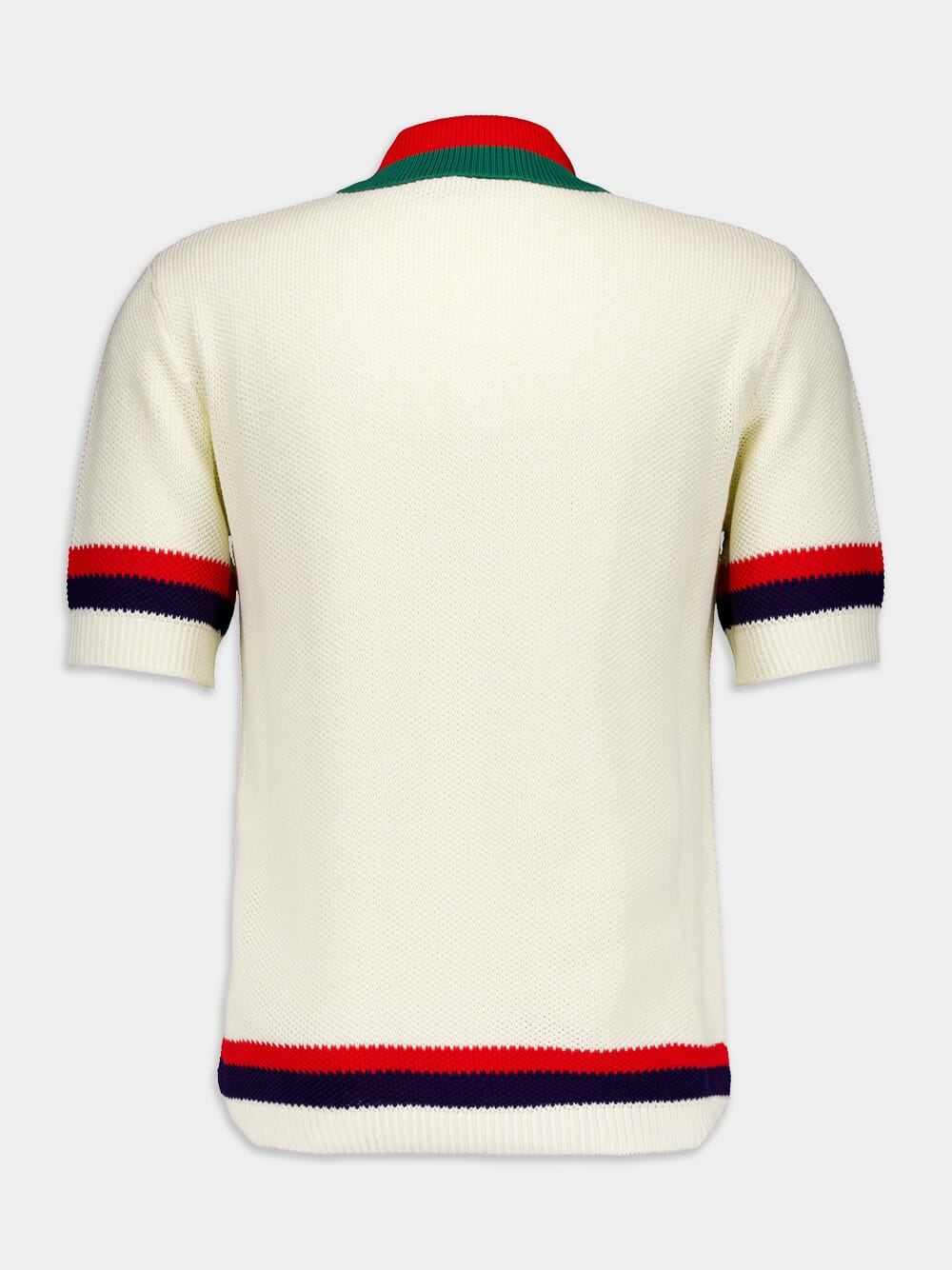 Knit Cotton Polo T-Shirt With Web, crafted from soft knit cotton, this polo t-shirt offers both comfort and style. It features an Interlocking G embroidered patch, showcasing the iconic Gucci logo. The polo collar with Web detailing adds a touch of sophistication, while the button-through placket provides a classic look. With short sleeves and rib trim, this t-shirt is a perfect blend of timeless design and modern appeal.