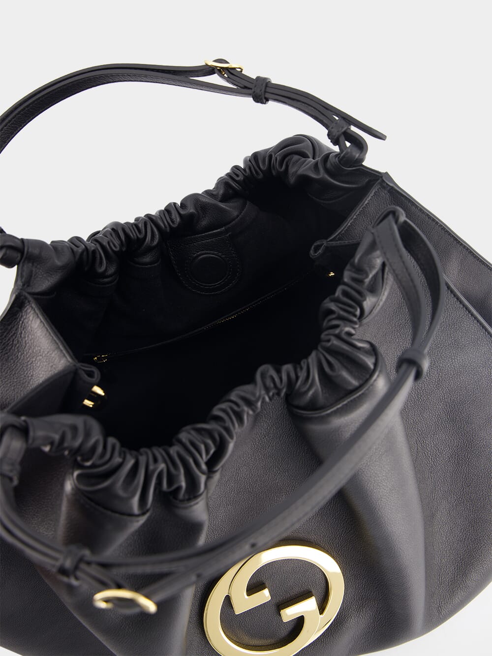 Large Blondie Tote Bag, featuring the signature Interlocking G logo that adds a touch of luxury to any ensemble. Enhanced by gleaming gold-tone hardware, its suede lining exudes elegance. With both an adjustable shoulder strap and a detachable chain-link shoulder strap, this bag offers versatile carrying options. The concealed magnetic fastening ensures security, while the internal zip-fastening pocket provides organization within the spacious main compartment.