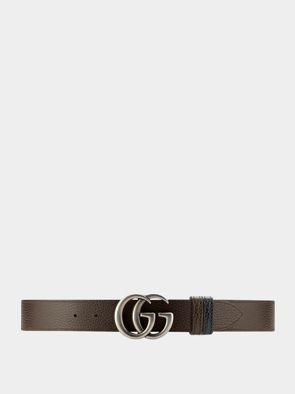 Gucci GG Marmont reversible belt in black that reverses to brown. Double G buckle with palladium-toned hardware.