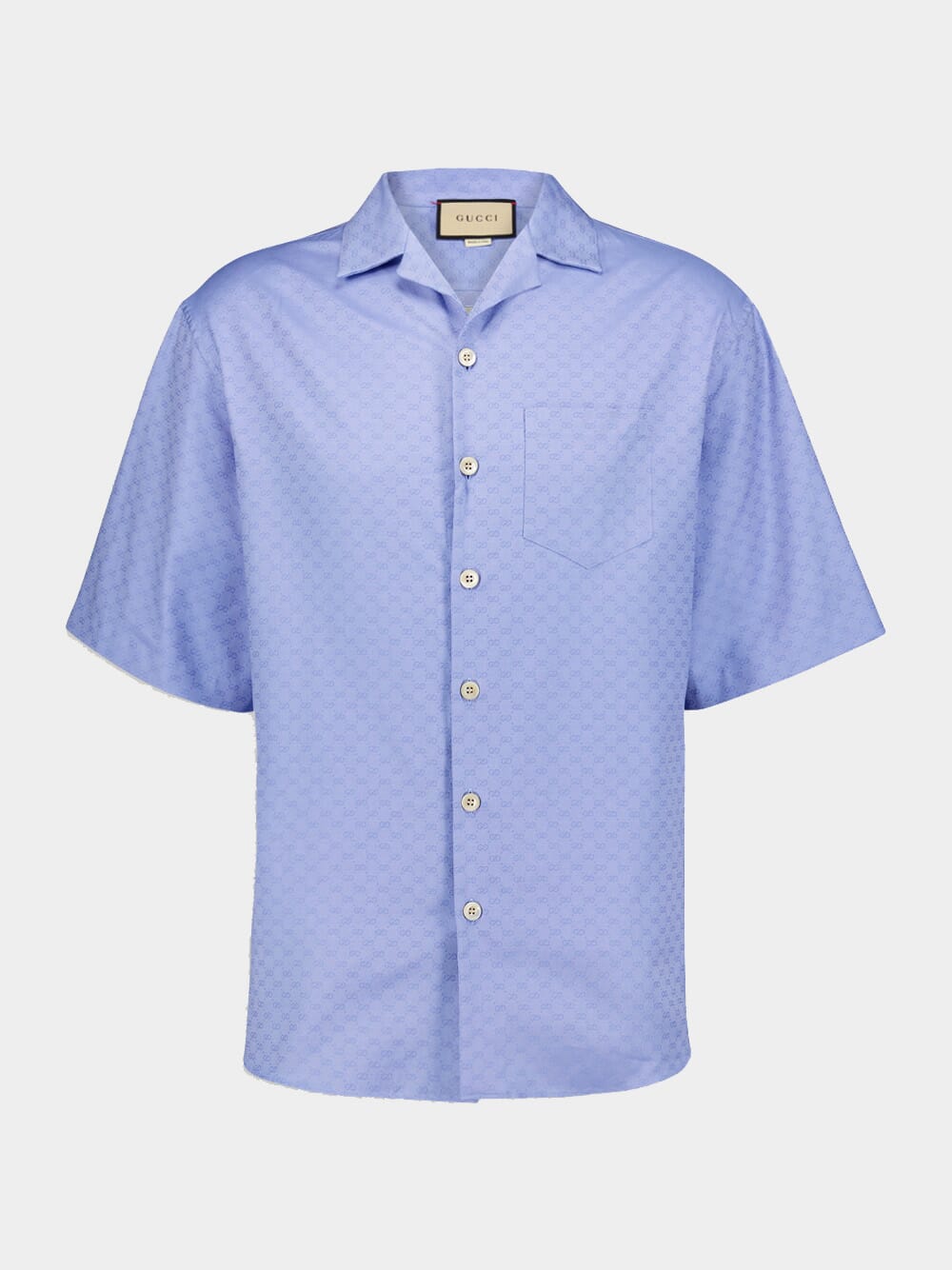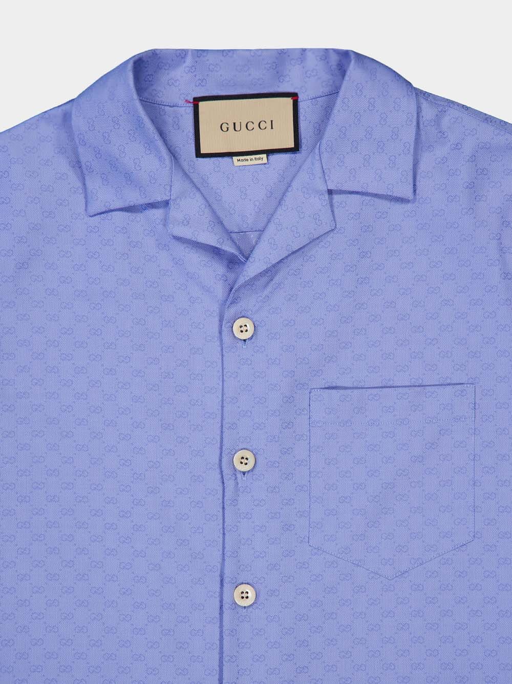 Mini GG Oxford Cotton Shirt, a perfect blend of style and comfort. Embrace the warm weather with short sleeves, keeping you cool and fashionable. The front chest pocket adds a touch of practicality, while the button closure ensures a secure fit.