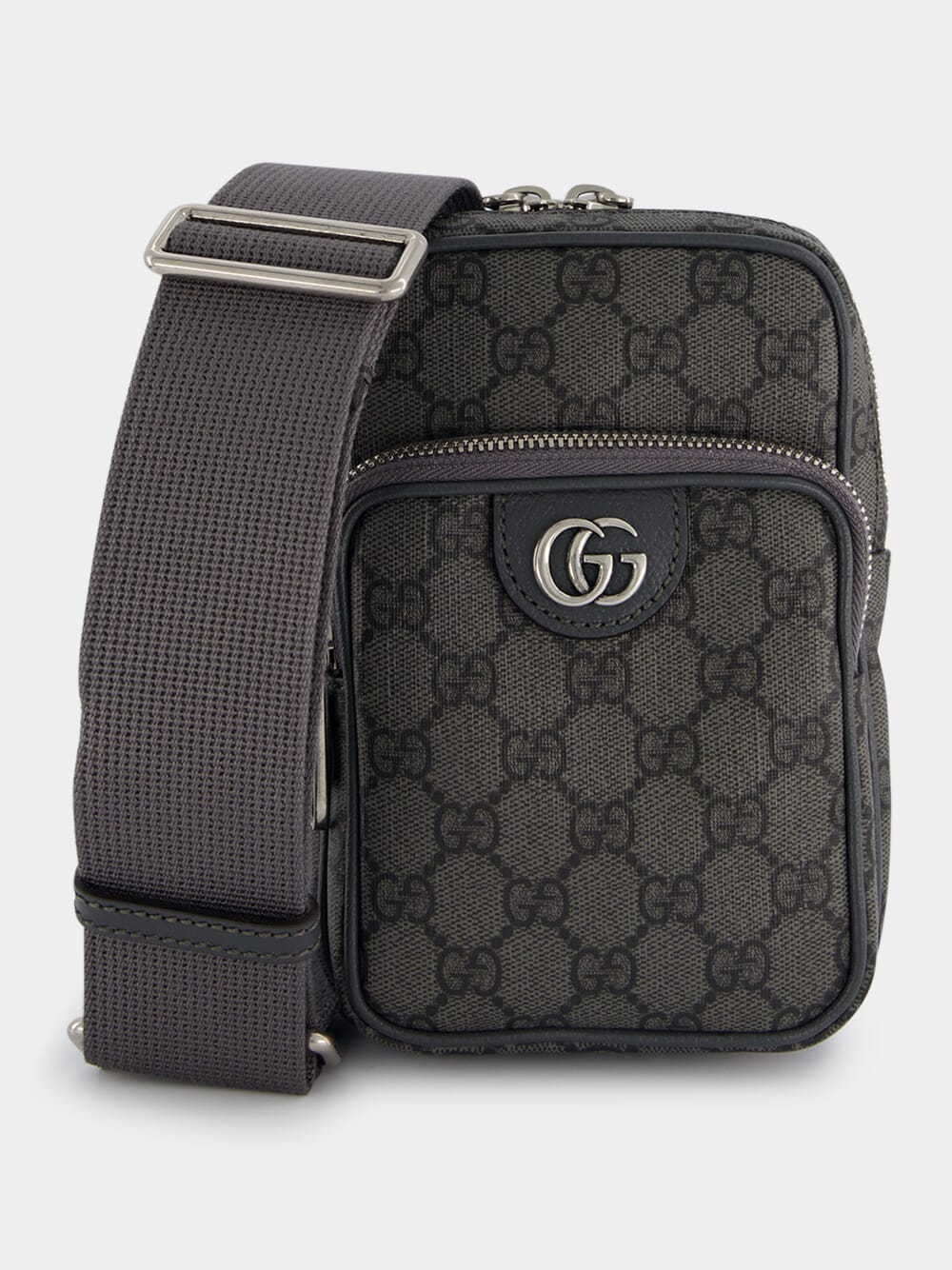 Ophidia GG Mini Bag, crafted with a captivating blend of grey and black GG Supreme canvas, complemented by grey leather trim and palladium-toned hardware. The cotton linen lining adds a touch of luxury and durability. Adorned with the iconic Double G logo, this mini bag showcases our signature style. Inside, you'll find two card slots for easy organization, while the external zip pocket offers convenient storage.