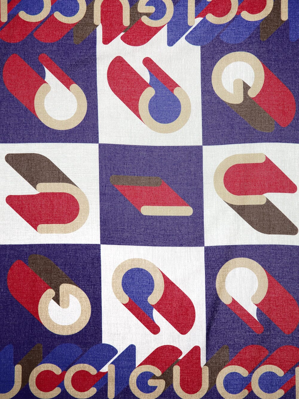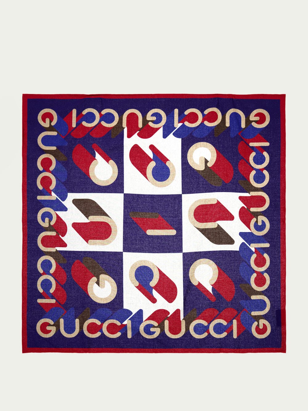 Retro Geometric Gucci Cotton Voile Carré crafted from the finest, premium cotton, this multicolored wonder boasts an explosion of hues, reminiscent of the glorious retro era. Its geometric patterns exude a timeless charm, blending nostalgia with contemporary fashion. The soft and breathable cotton voile fabric ensures a luxurious feel against your skin, making it perfect for any occasion.