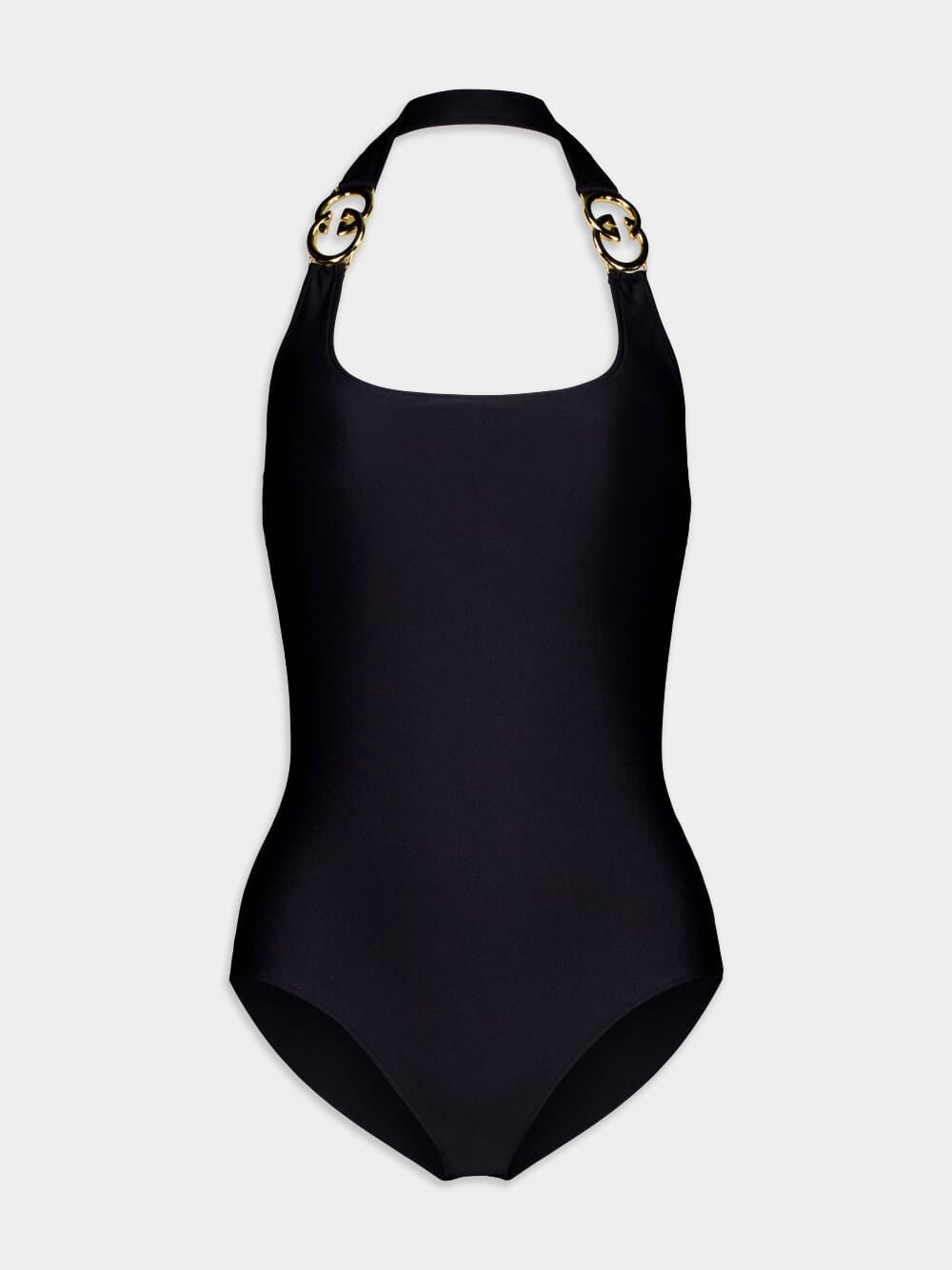 Sparkling Jersey Swimsuit with Interlocking G, crafted from a luxurious black sparkling jersey fabric, this swimsuit is sure to turn heads. The halter neck design exudes timeless elegance, while the scoop back adds a touch of allure. The eye-catching Interlocking G detail adds a signature touch of sophistication. Whether you're lounging by the pool or soaking up the sun on a tropical getaway, this swimsuit is a must-have.