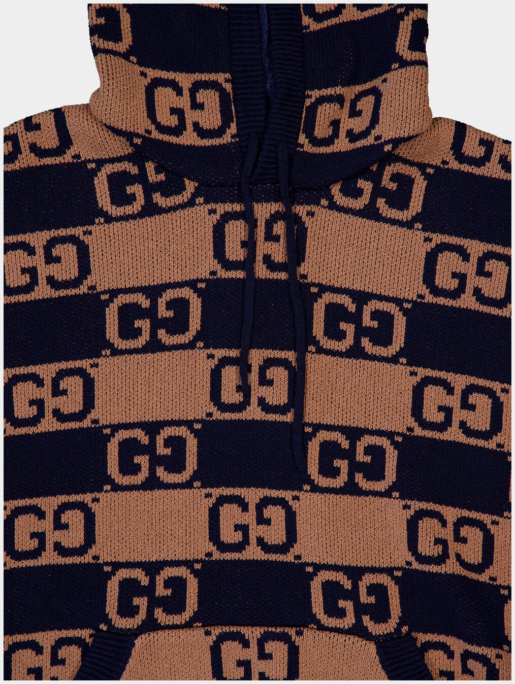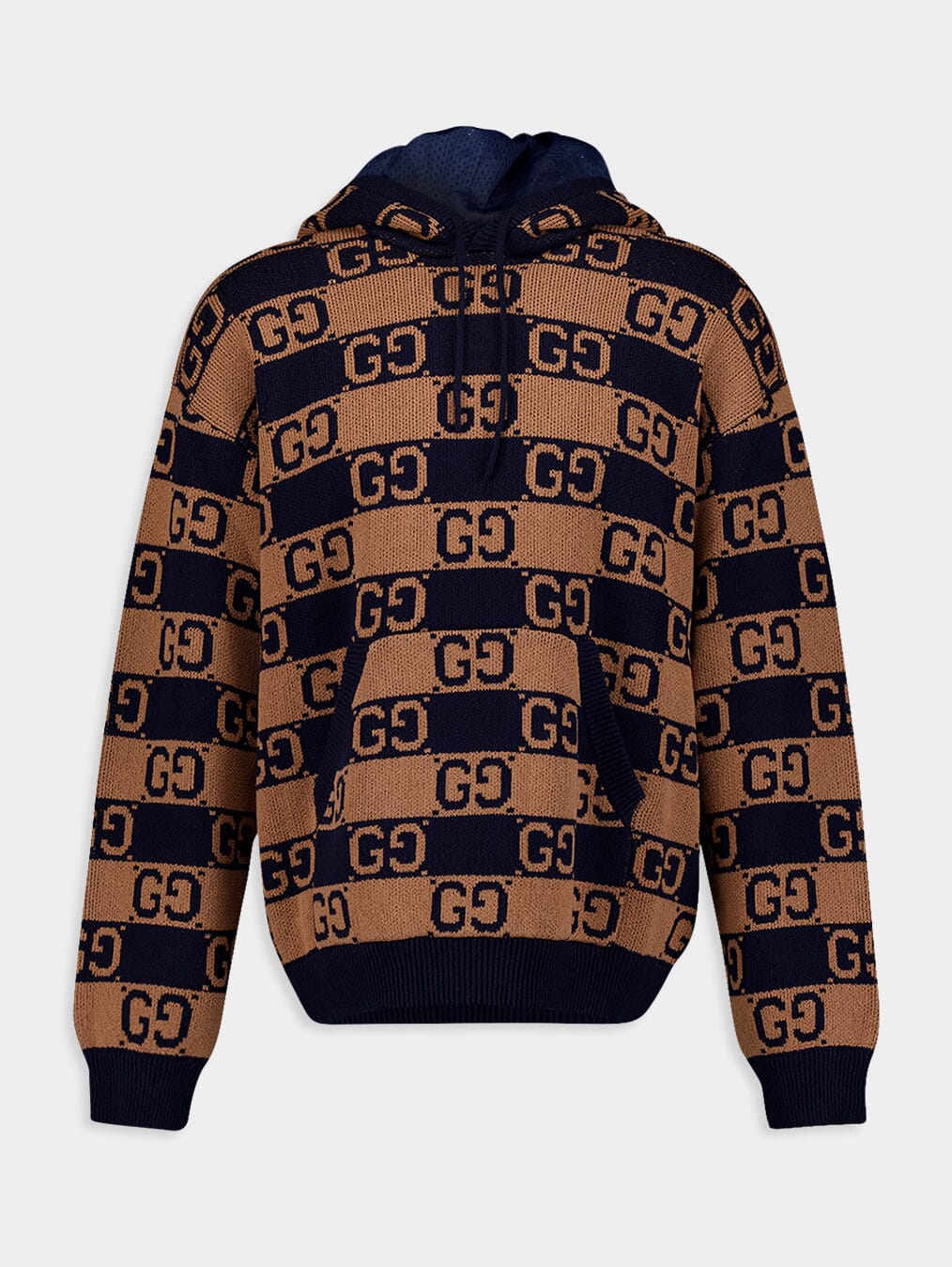 Supreme GG Intarsia-Knit Hoodie, crafted with precision intarsia knitting, this hoodie boasts a drawstring hood for adjustable fit, showcasing the signature GG Supreme print. With long sleeves and ribbed cuffs and hem, it provides optimal warmth and durability. Featuring a convenient front pouch pocket and a straight hem, this hoodie is the epitome of fashion and functionality.