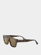 From Gucci’s Pre-Fall 2025 collection, these rectangular sunglasses are crafted in dark tortoiseshell acetate and feature dark brown polarized lenses for superior UVA/UVB protection. The temples are adorned with the House's iconic Web stripe and an engraved Gucci logo on a refined metal plaque. Merging retro elegance with modern sophistication, this design offers a timeless yet distinctive statement in luxury eyewear.