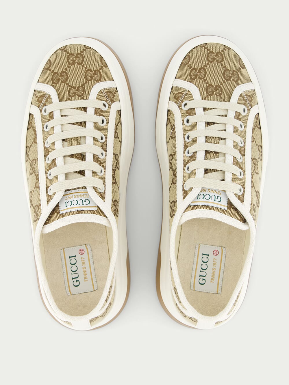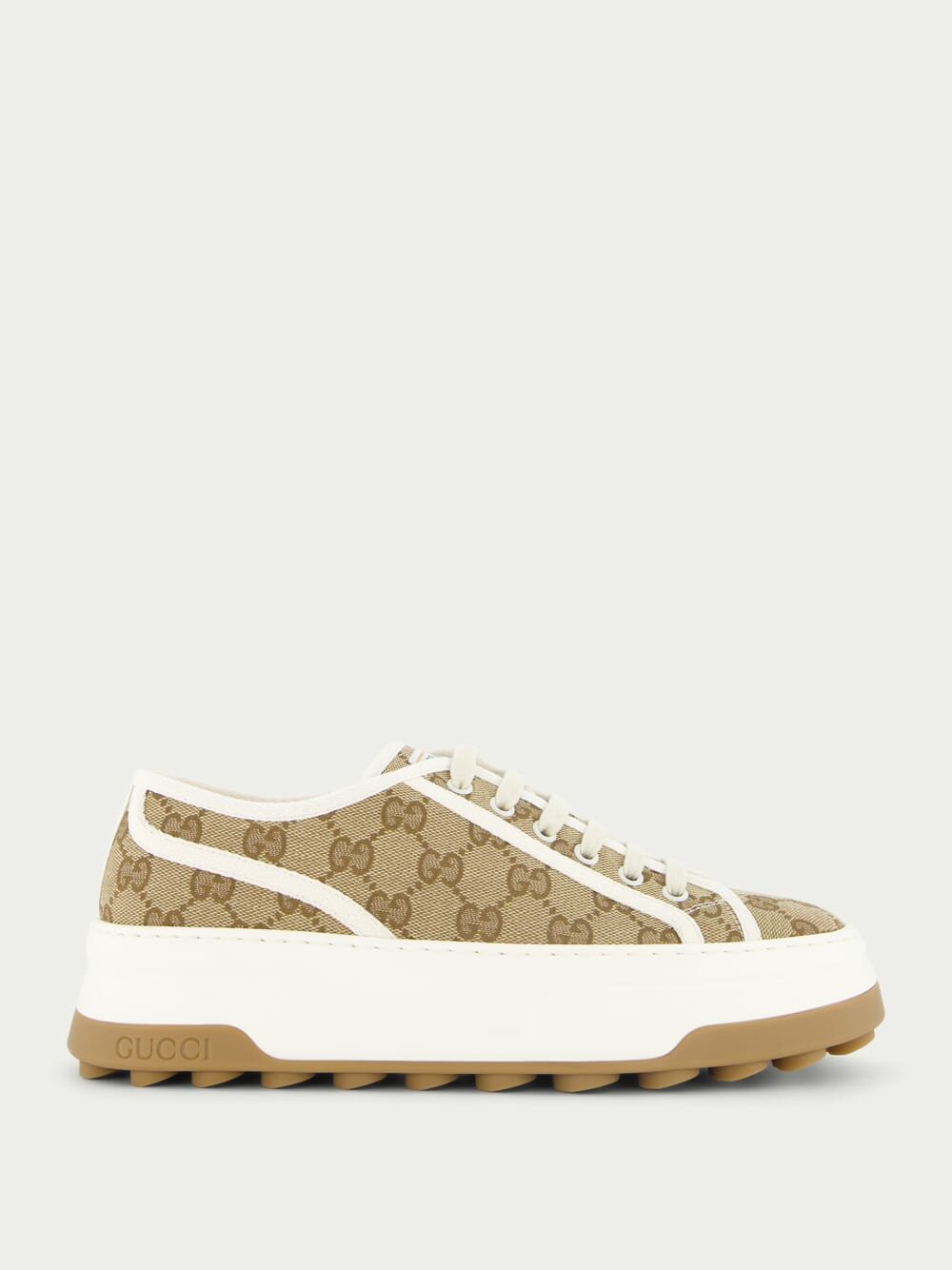 Women's GG Sneakers, crafted with classic GG canvas, these trainers exude timeless elegance. The round toe design ensures a comfortable fit, while the front lace-up fastening offers a secure closure. The logo patch at the tongue adds a touch of brand recognition, while the branded insole provides extra cushioning and support. Complete with a chunky sole for a trendy look, these trainers are the perfect choice for everyday wear.