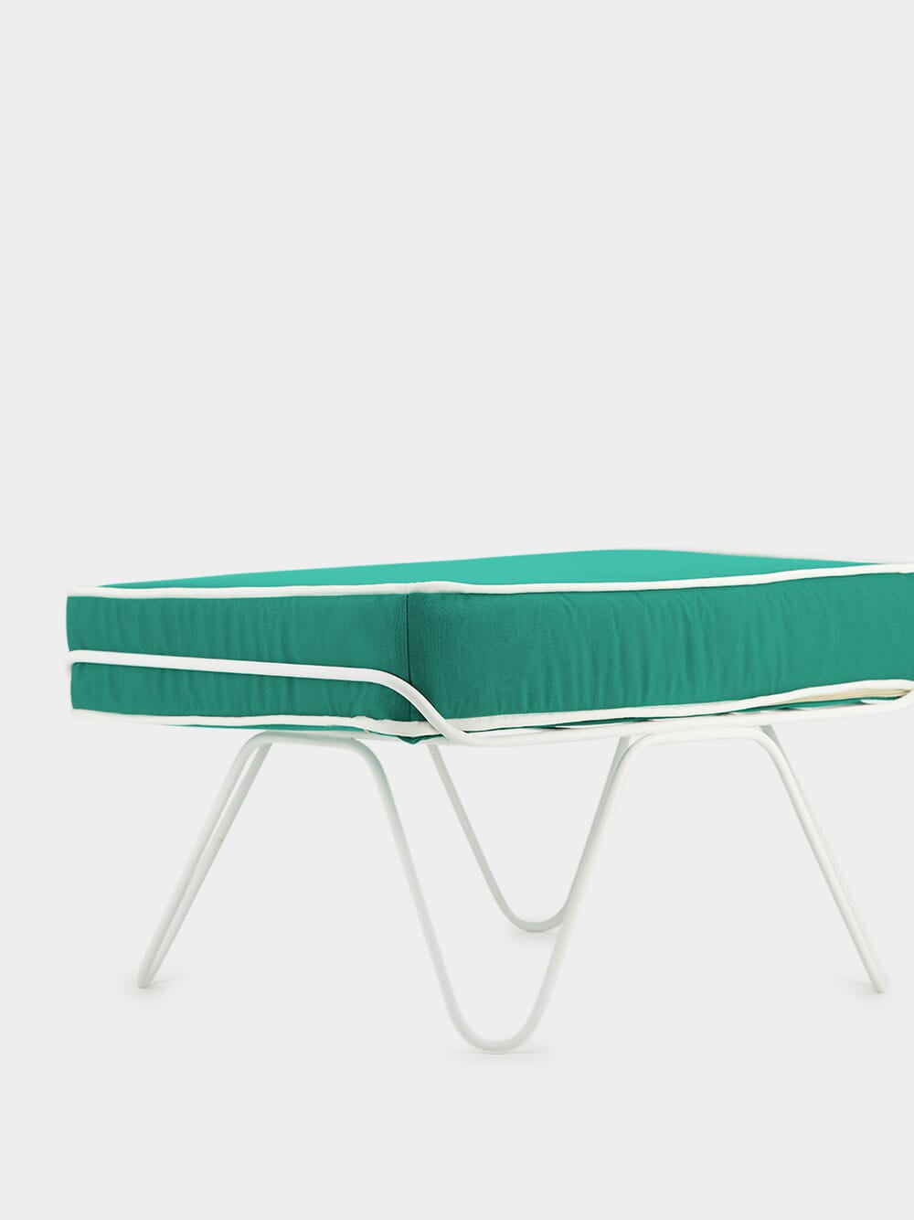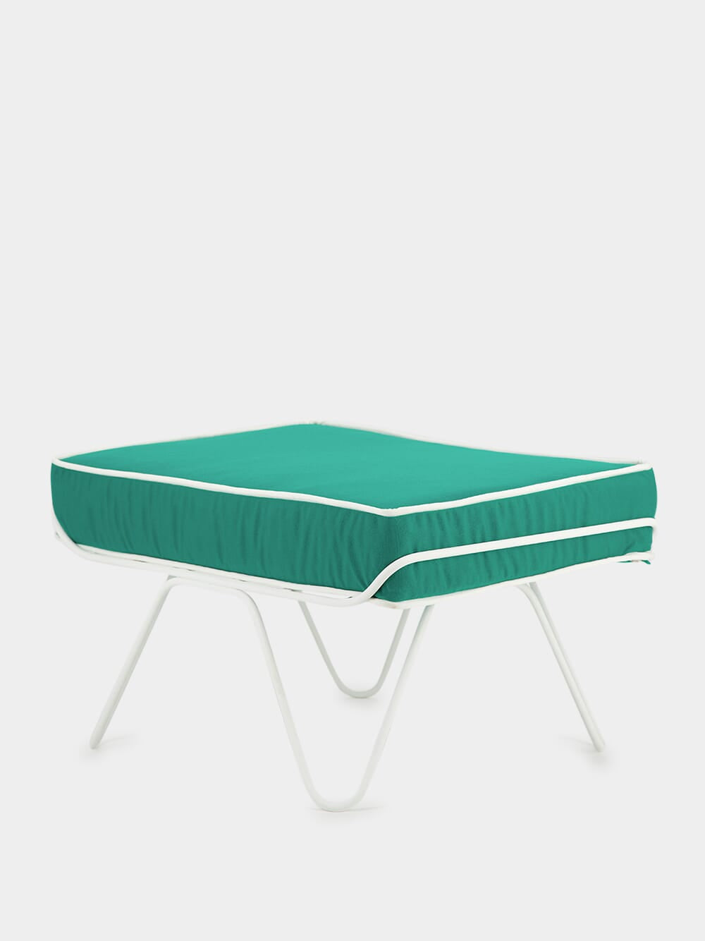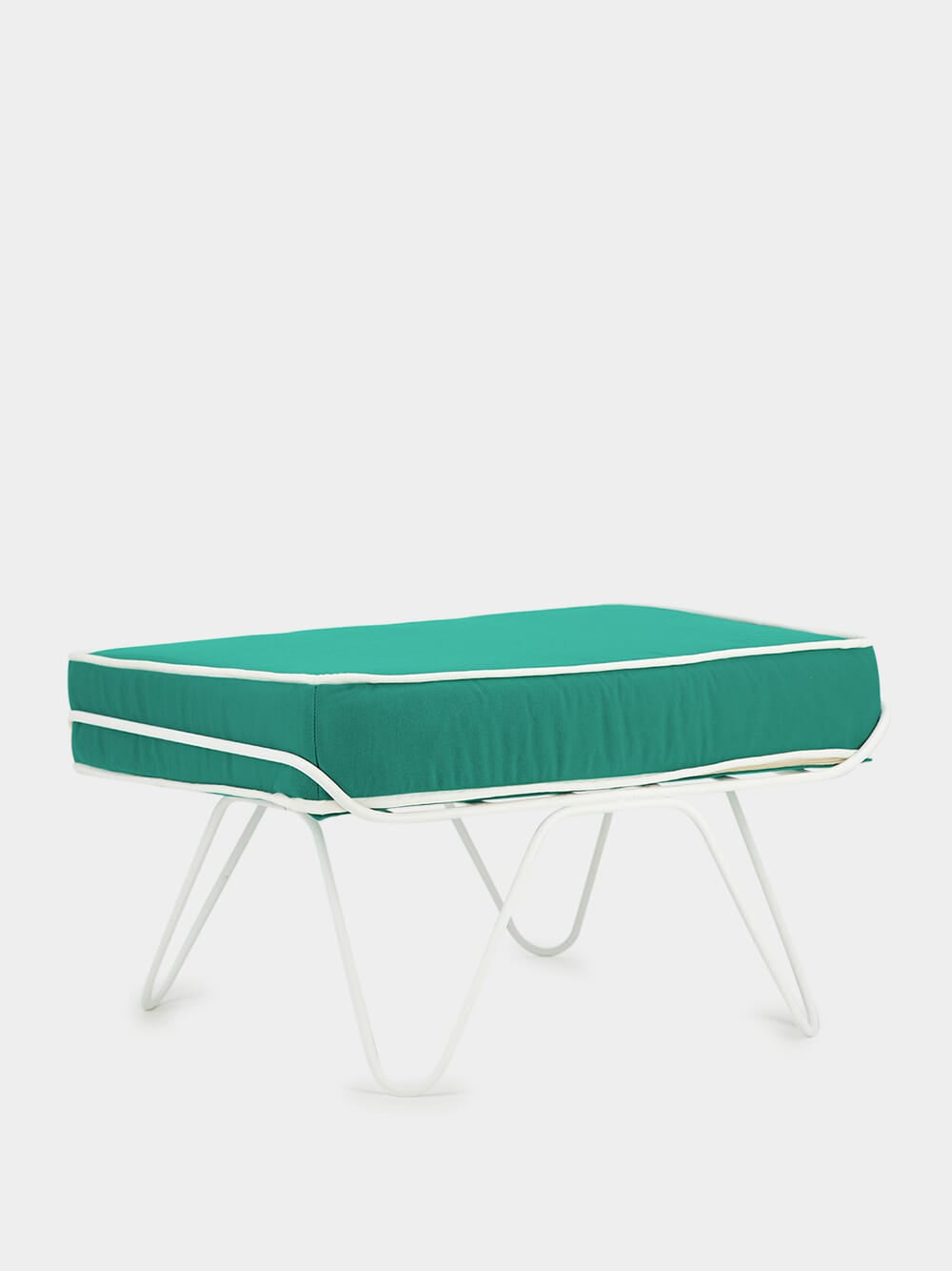 Croisette Pouffe features a vibrant grass green and white color scheme that instantly invigorates any room. Its dark wood arms provide a touch of elegance and sophistication. Crafted with linen upholstery, this pouffe exudes comfort and style. Perfect as an extra seating option or as a footrest, the Croisette Pouffe adds a charming and functional accent to your home decor.