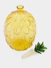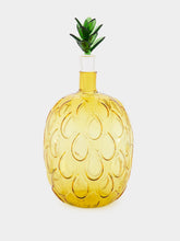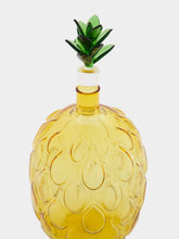 This hand-made, flame-worked pineapple bottle adds a splash of tropical charm to any setting. The bottle features a vibrant yellow body with a green pineapple-shaped stopper, making it an eye-catching piece for your kitchen or bar. Each bottle is meticulously crafted, ensuring a unique and high-quality product.