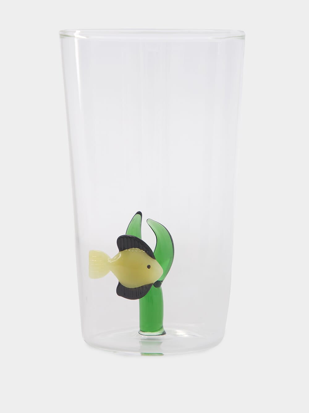 Marine Garden longdrink glass crafted through the art of flame-working. Each glass is a masterpiece, meticulously hand-formed by skilled artisans who infuse their expertise into every detail. The enchanting marine garden design, delicately flame-worked, brings a touch of aquatic elegance to your drinkware collection.