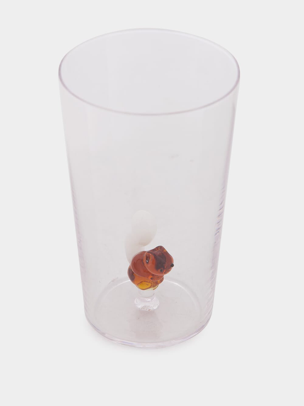 This exquisite hand-made longdrink glass features a charming snail design, meticulously flame-worked to create a unique and vibrant piece. The clear glass combined with the yellow and purple snail design adds a touch of elegance and playfulness to any kitchen or dining table. Part of the Animal farm collection designed by Alessandra Baldereschi.
