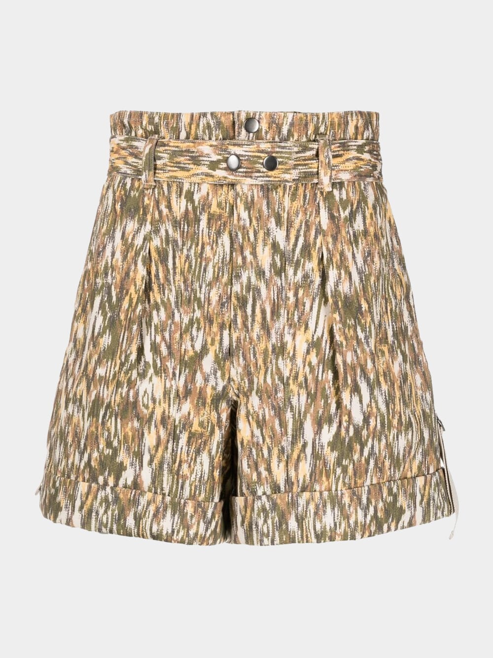 Isabel Marant Étoile khaki kaloscoe cargo printed cotton shorts.