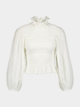 Idris Cotton Smocked Blouse, crafted from a comfortable cotton blend that exudes both elegance and comfort. This blouse showcases a charming smocked panel and a delicate ruffle collar, adding a touch of vintage-inspired sophistication. With long puff sleeves and elasticated cuffs, it provides a flattering and versatile fit for various occasions. The ruffled trim enhances its feminine charm, while the straight hem ensures a polished finish to your look.