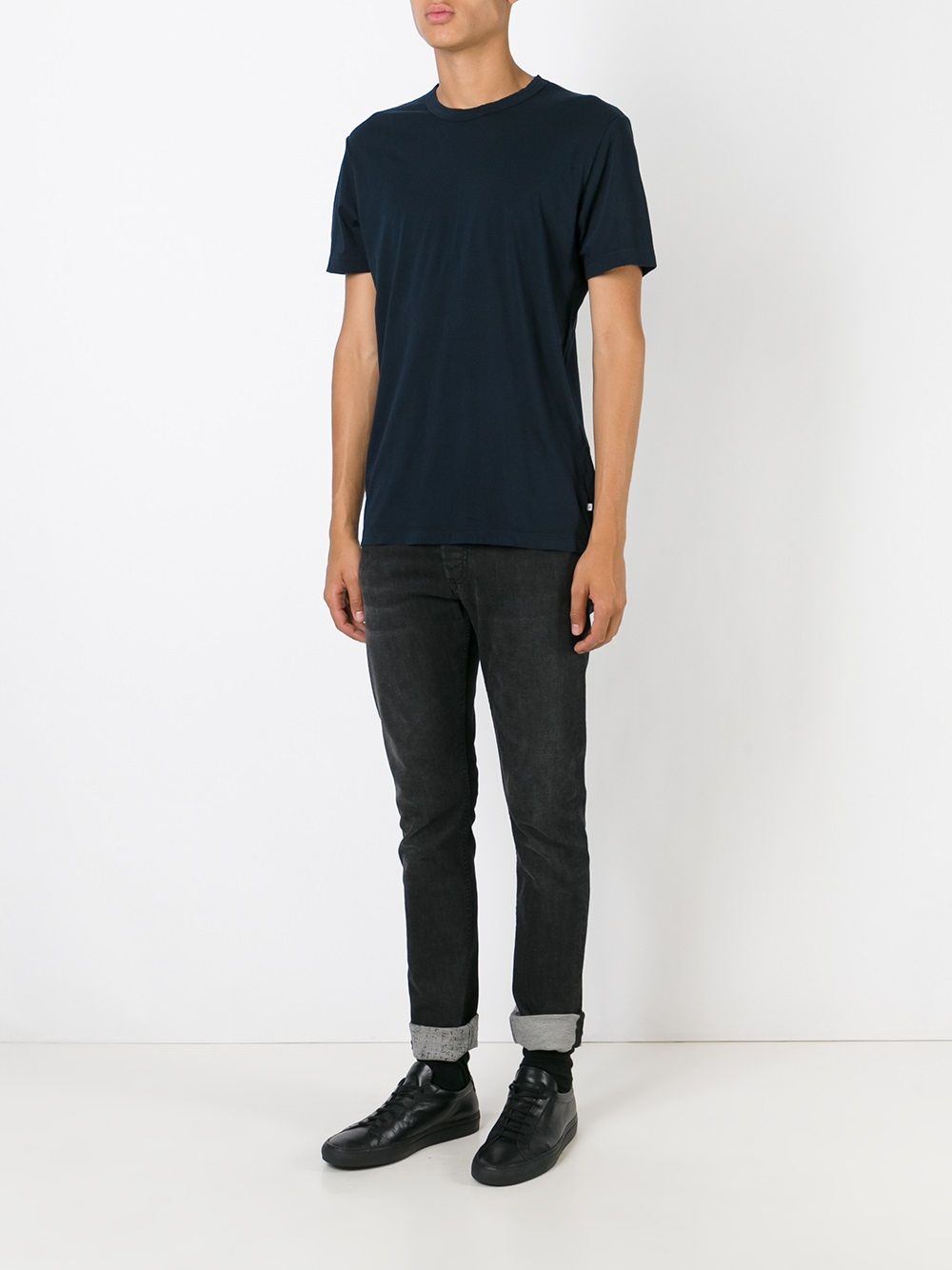 James Perse dark blue cotton classic t-shirt with a binded neckline.