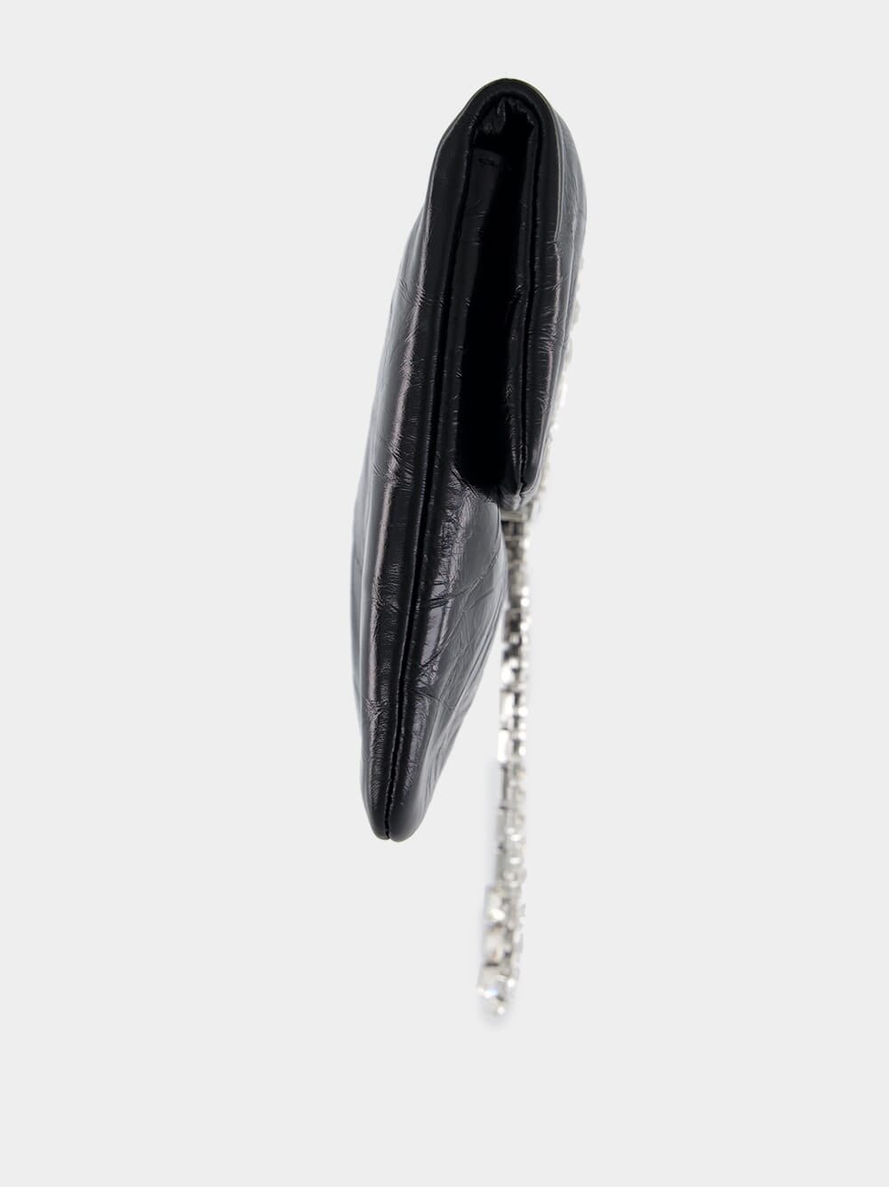 Zandra Black Vintage Metallic Leather Clutch Bag