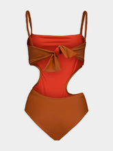 Coastline Reversible Cutout Swimsuit, a stunning blend of rich brown and fiery red. This exquisite swimsuit showcases a unique color combination that exudes both warmth and boldness. The cutout details add a touch of allure, while the reversible design offers versatile styling options. Crafted with meticulous attention to detail, it ensures a comfortable and flattering fit.