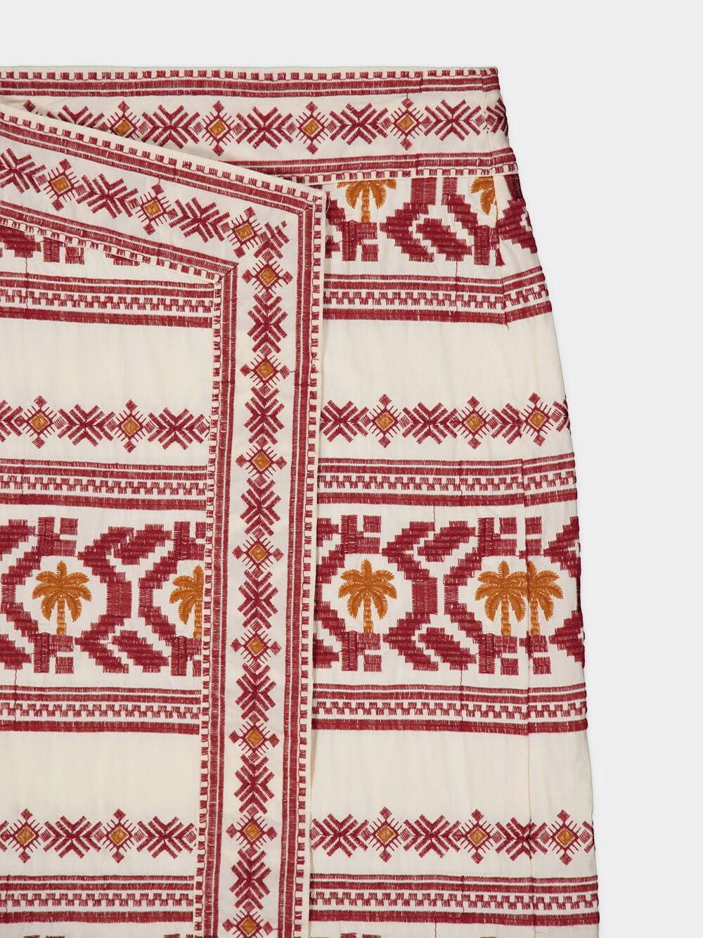Pleno Sol-Embroidered Cotton Wrap Skirt