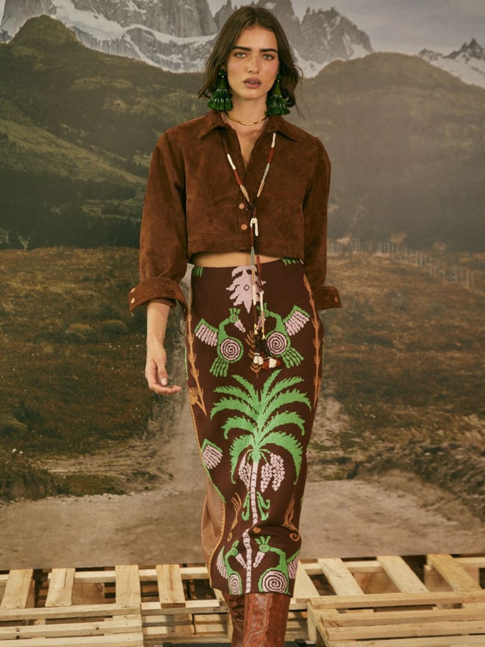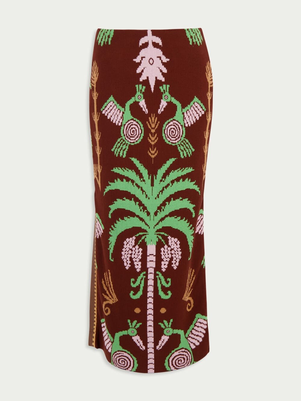 Rosliny Midi Skirt, features a convenient zip fastening along the side, ensuring easy and comfortable wear. Adorned with folk motifs and pops of color, it showcases a unique blend of tradition and modernity. Crafted with meticulous attention to detail, this midi skirt is a true work of art.
