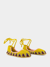 A warm, earthy tone enhances the artisanal elegance of this curry brown ballerina, hand-crocheted in India. Made from a breathable blend of viscose and cotton, it features an unlined upper, a soft calfskin insole, and a flexible rubber sole. The side laces offer a secure fit, while the 5 mm heel ensures subtle elevation. A beautifully crafted flat that blends traditional techniques with contemporary sophistication. Fits true to size.