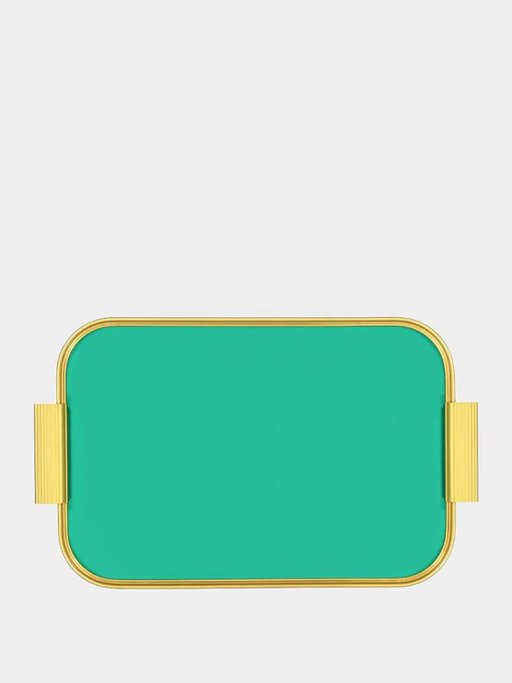 Kaymet aluminium tray with golden finish and mint green on the base.