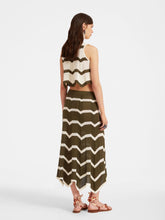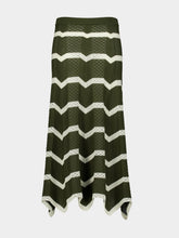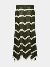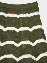 Elevate your wardrobe with this sophisticated chevron knit midi skirt. Crafted with intricate olive and cream chevron patterns, this piece offers a sleek and modern silhouette, perfect for a refined yet comfortable look. Ideal for transitioning between seasons, this skirt pairs flawlessly with both formal and casual ensembles.