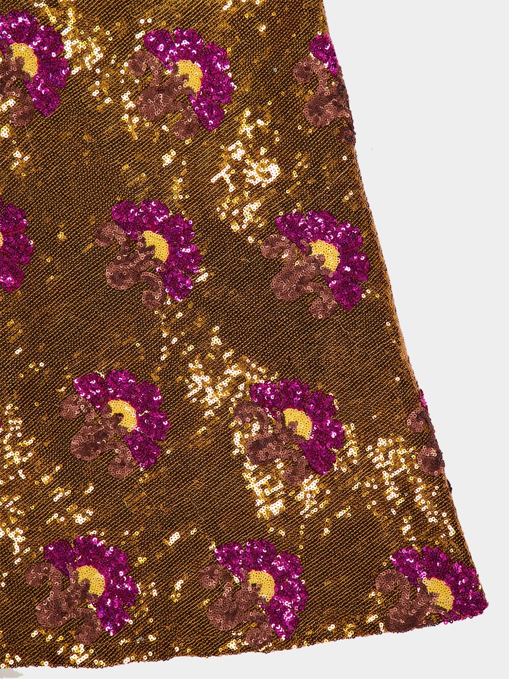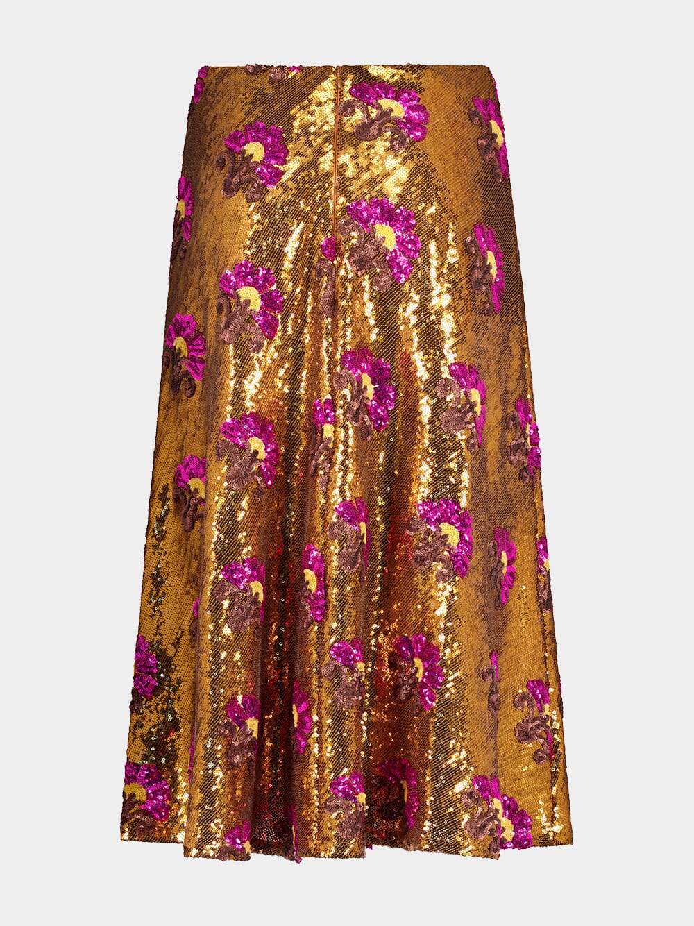Gold Sequin Floral Midi Skirt