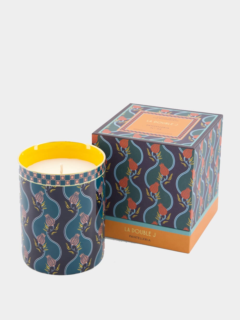 Pantelleria Scented Candle (320g), a true sensory delight for your space. Adorned with an exquisite all-over floral print and accented with contrasting trim, this candle adds a touch of elegance to any room. Ignite the single cotton wick and let the fragrance notes of fig, wild lavender, sandalwood, bergamot, cedar, blackcurrant, and white musk fill the air, creating a serene and inviting ambiance. With an impressive 45-hour burn time, this candle ensures long-lasting enjoyment. Indulge your senses and infuse your surroundings with the harmonious blend of nature-inspired scents, courtesy of our Pantelleria Scented Candle.
