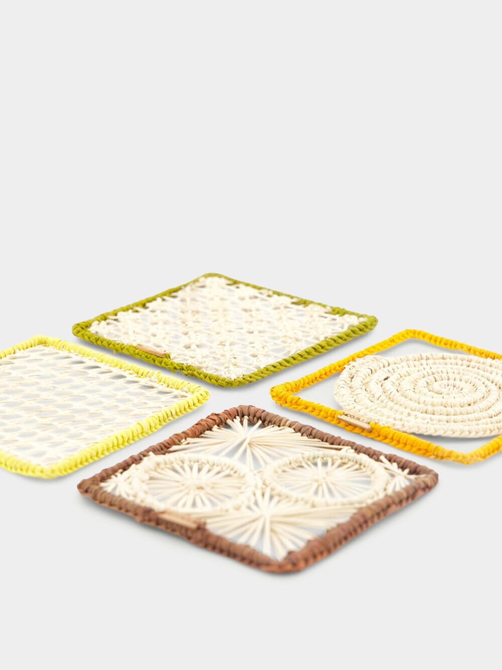 Set of 4 raffia coaster , a perfect blend of style and functionality. Crafted with utmost care and designed to elevate your home decor, this square-shaped coaster set will leave a lasting impression. With its contrasting trim and eye-catching colors, these coasters effortlessly add a touch of sophistication to any table setting. The unique curved corners provide a modern twist, ensuring a comfortable and secure fit for your glassware.