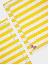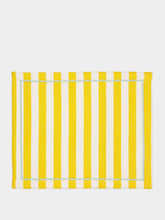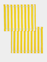 Brighten your dining table with this set of two yellow striped placemats, crafted from 100% linen in Italy. Featuring bold Riviera stripes, these placemats add a vibrant pop of color to any table setting, whether paired with crisp white linens or your favorite patterned tablecloths. Slightly padded with stitched borders for an added touch of elegance, they bring both style and practicality to your dining experience. Made from linen sourced from Lake Como, each piece showcases natural irregularities, enhancing its unique charm. Machine washable for easy care.
