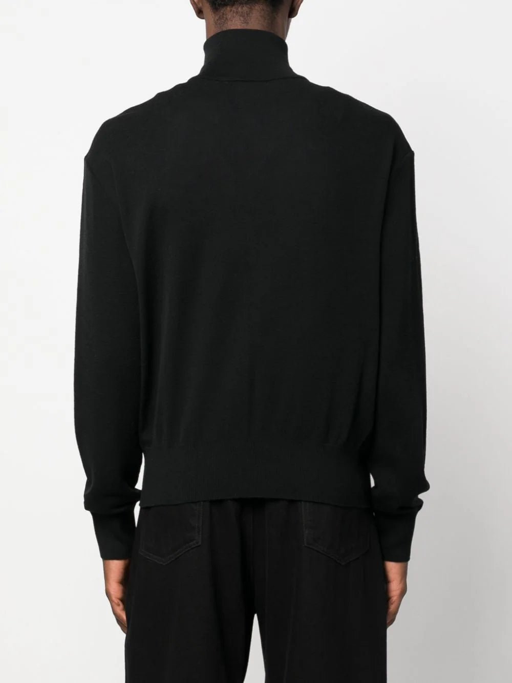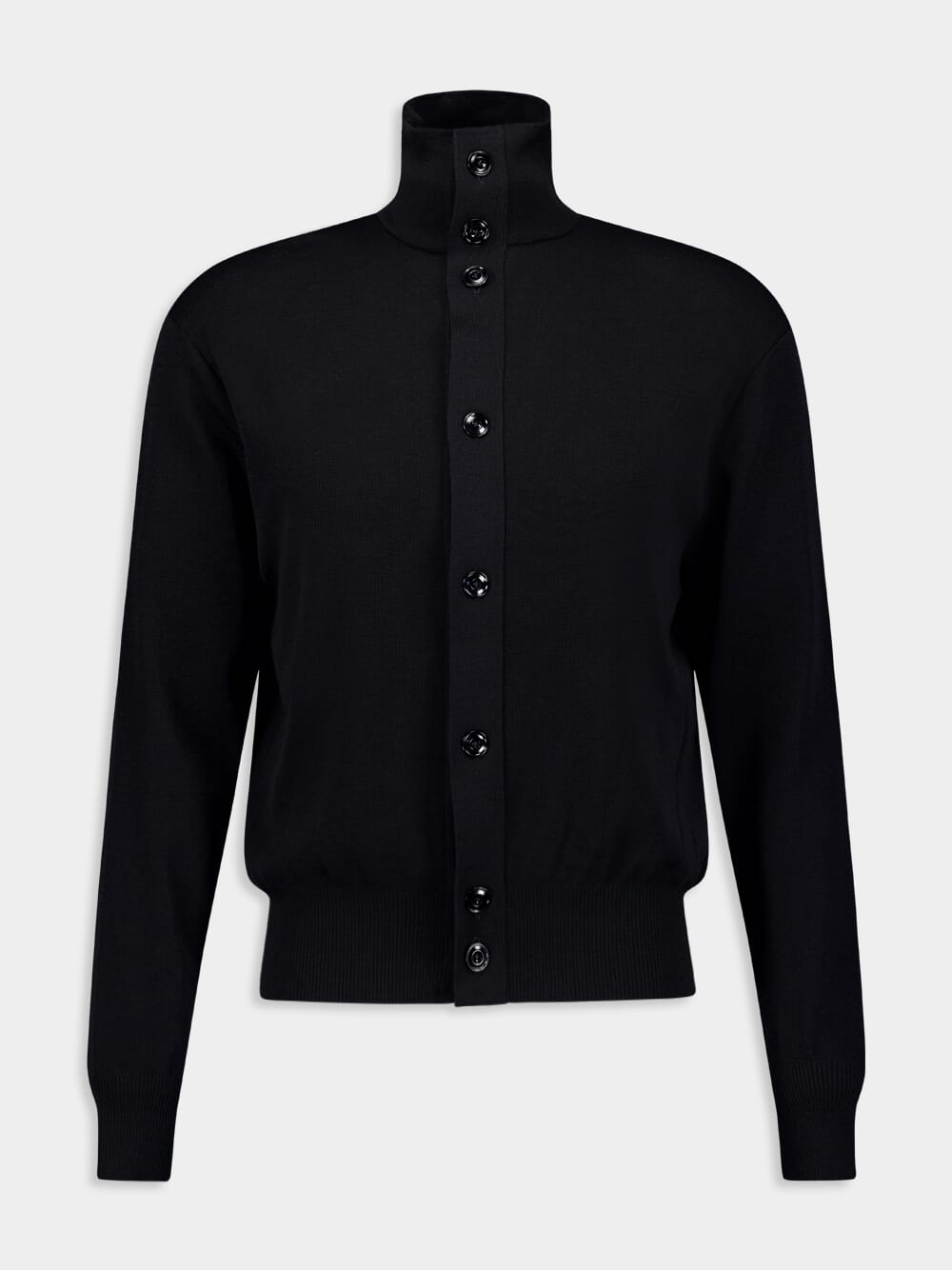 High-Neck Wool Cardigan, crafted with meticulous attention to detail, this cardigan features a ribbed trim that adds texture and sophistication. The stand-up collar exudes a touch of refinement, while the front button fastening ensures easy wear. Embrace comfort with its long sleeves and enjoy a polished look with the straight hem.