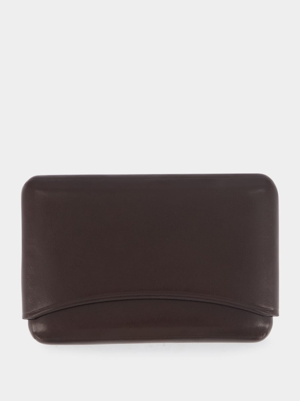 Molded Card Holder, meticulously crafted from exquisite vegetable-tanned leather. Embodying a compact grain and a velvety-smooth finish, this holder exudes sophistication. Its innovative design features two seamlessly molded shapes that elegantly interlock, eliminating the need for additional closures. The unlined interior, along with the seamless construction, ensures lasting durability, while subtle creasing enhances edge protection.
