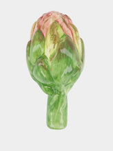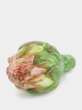 Celebrate the art of ceramics with this beautifully crafted artichoke ornament. Its delicate pink and green hues capture the essence of the vegetable's natural beauty, making it a perfect decorative piece to add a touch of the garden to any interior space.