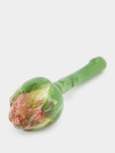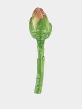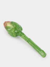 This hand-painted ceramic artichoke brings a slice of the vegetable patch into your home decor. With its vibrant green stem and subtly shaded pink tip, it's a charming accent piece that celebrates nature's design and adds a fresh botanical feel to your space.