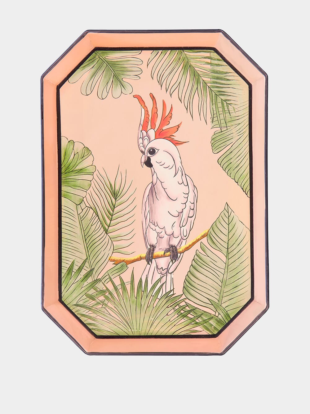 Les Ottomans Fauna collection, oval multicolour iron tray with handpaited catatoo.