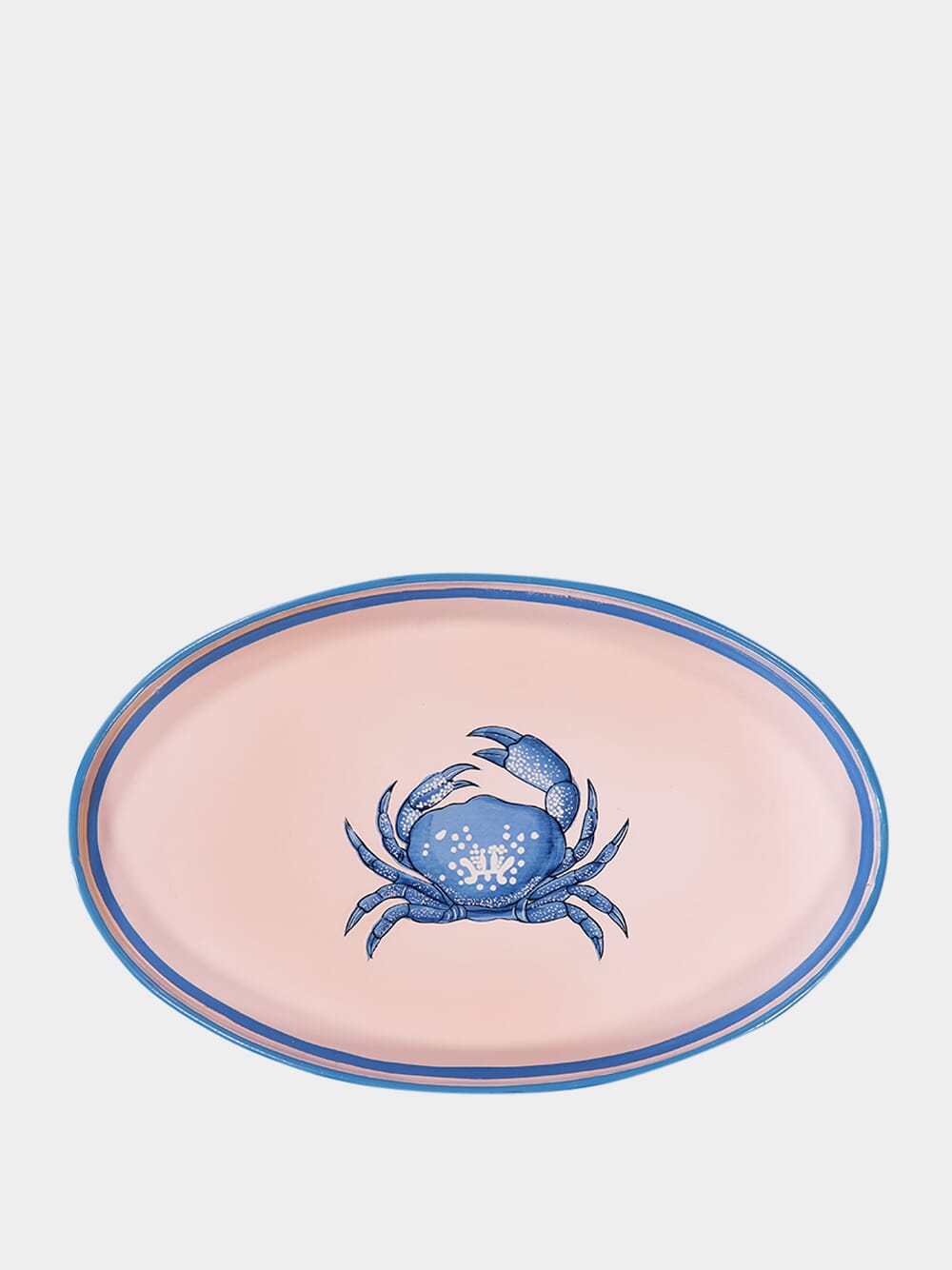 Les Ottomans Fauna collection, oval multicolour iron tray with handpaited crab.