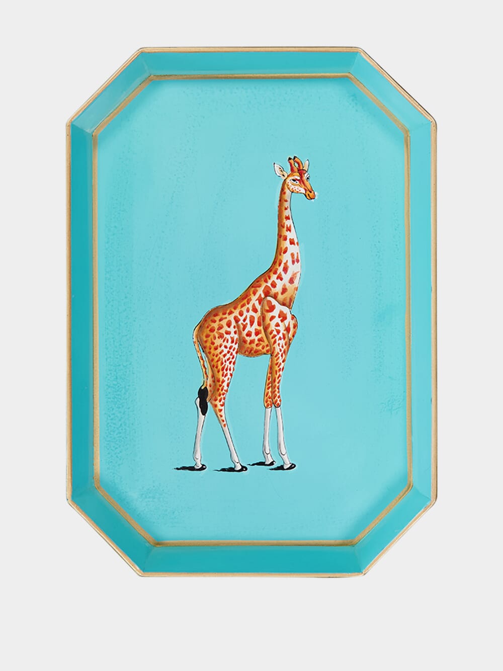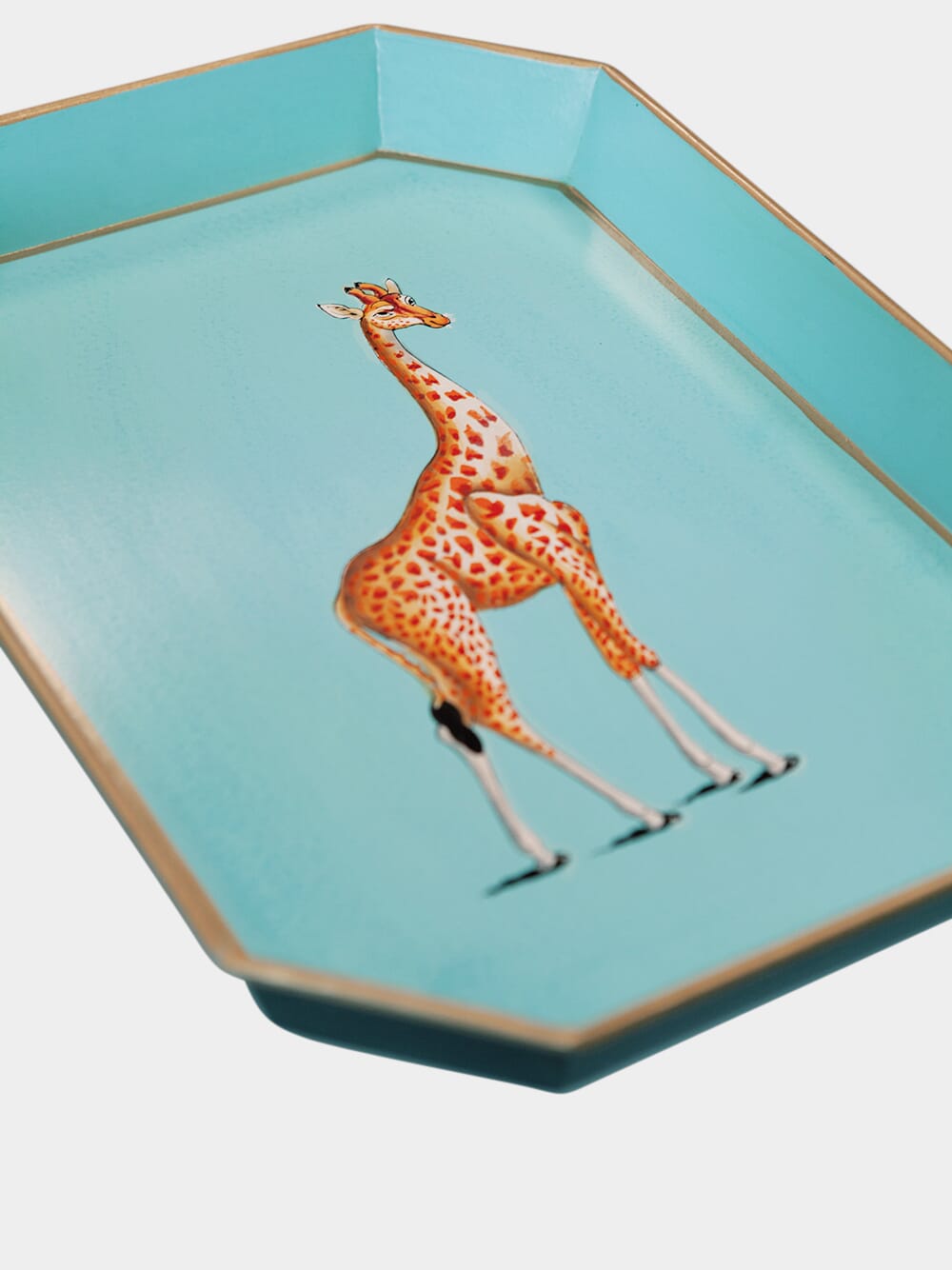 Les Ottomans Fauna collection, oval multicolour iron tray with handpaited giraffe.
