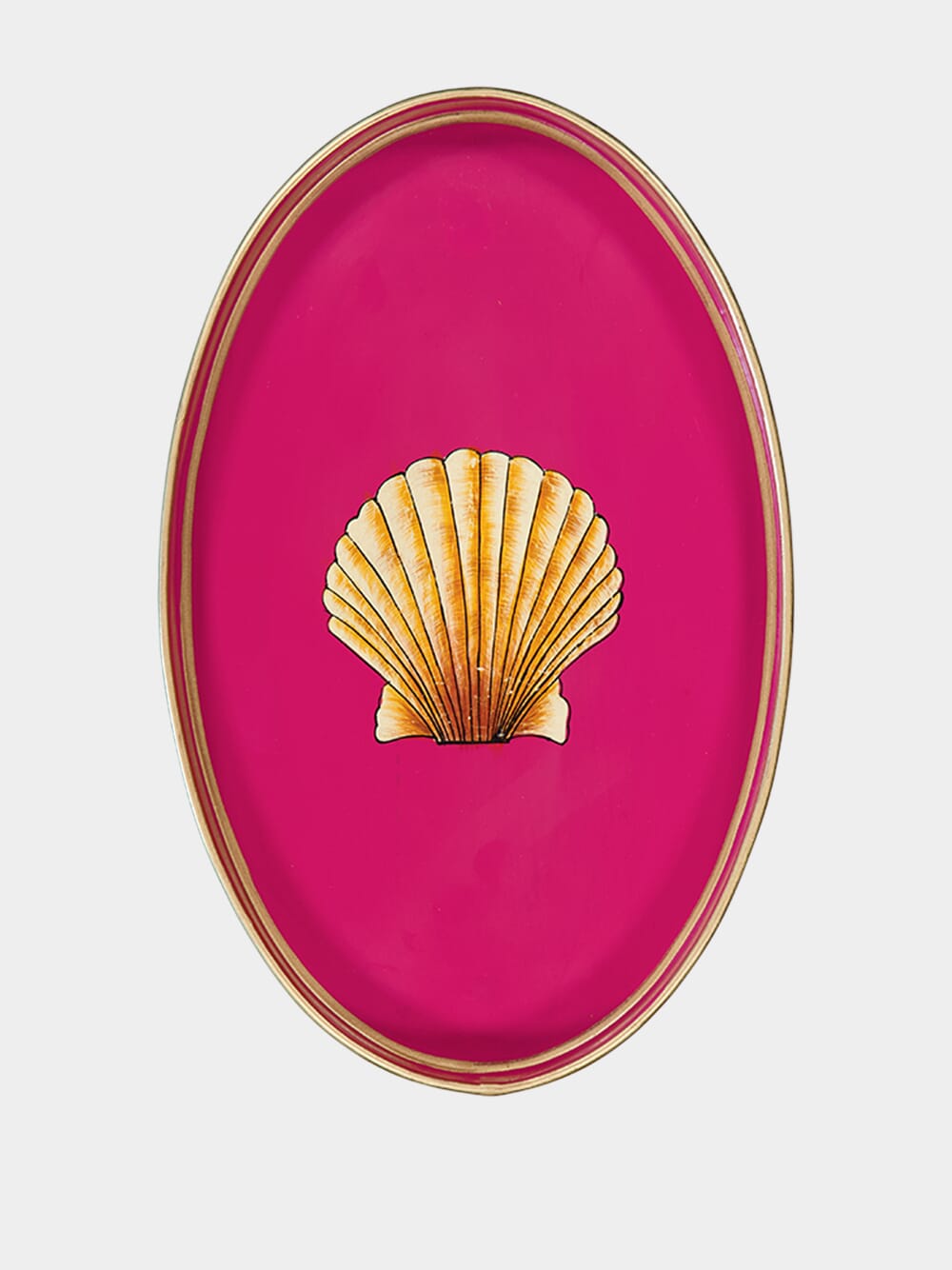 Les Ottomans Flora collection, oval pink iron tray with handpainted shell.