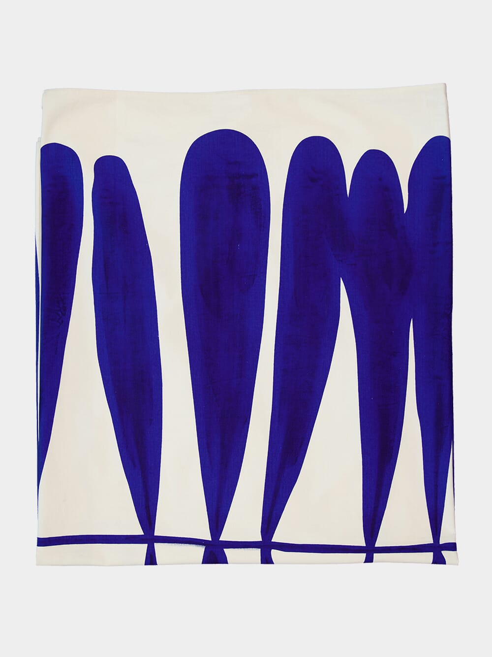 Les Ottomans handprinted white and blue cotton tablecloth.