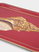 This Handpainted Conch Iron Tray is a striking piece that combines functionality with artistic elegance. The vibrant red background is beautifully contrasted by the intricate hand-painted conch shell, showcasing detailed craftsmanship and a keen eye for color. Made from durable iron, this tray is perfect for serving or as a decorative accent in any home. Its unique design adds a touch of seaside charm and sophistication, making it an ideal addition to both modern and traditional interiors.
