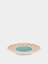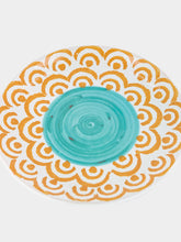 Bask in the Mediterranean allure with this 20cm Sicily Ceramic Dessert Plate, hand-painted with a sunburst pattern in warm orange and serene teal. This vibrant plate draws inspiration from Sicilian artistry, turning every dessert presentation into a festive celebration. It's a piece that radiates joy and adds a bold statement to your table.