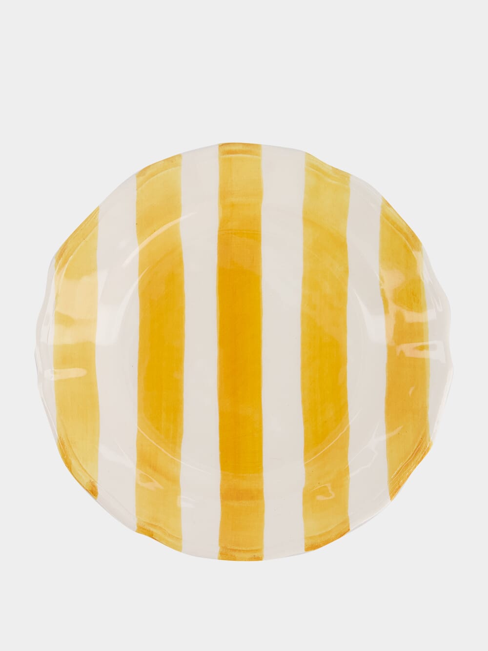 Add a vibrant touch to your table with this hand-painted ceramic dessert plate, featuring cheerful yellow and white stripes. Perfect for serving desserts or small treats, this plate combines functionality with a playful design. Crafted from high-quality ceramic, it ensures durability and a refined look. Ideal for both everyday use and special occasions, this dessert plate brings a splash of color and fun to your tableware collection.