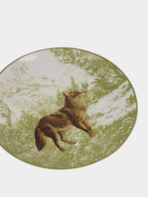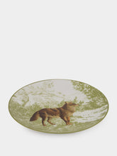 Les Ottomans La Menagerie Ottomane collection, green porcelain dessert plate with Wolf design.